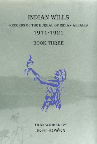 The words of your ancestors come to life in these wills. In 1996, these 1911-1921 Native American Wills laid in a file or on a shelf just collecting dust. Until discovered by Jeff Bowen they had never been filmed, reproduced, or transcribed in any form whatsoever.