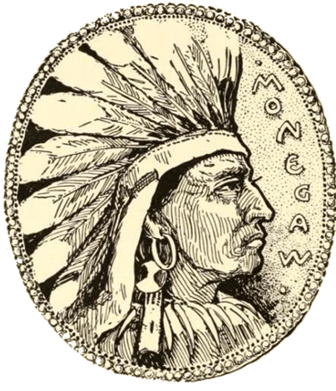 By reason of his kindly disposition, Monegaw was always a welcome guest at the white man's cabin. He frequently ate at their tables and would exchange stories with them around their camp fires and talk with their women and children, telling them of wild animals he had slain and of battles he had fought and won.