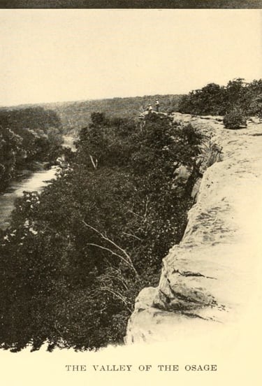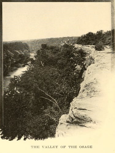 During the early part of the century a small party of Spanish adventurers left Florida and pushed northward, traveling sometimes by stream and sometimes pushing overland through unbroken forests. In the course of their wanderings they emerged, one day, upon a high bluff which overlooked the rich valley of the Osage. When they gazed upon the bright river, the green lowlands, the dark forests, the misty hill country and saw the smoke rising from quiet Indian villages, they were constrained to enter the land. They had heard that the Indians of the valley were friendly toward peaceful travelers; so they journeyed to a village and obtained permission to remain, for a season, and enjoy the bountiful fishing and hunting of the Indian land.