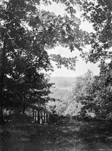 According to tradition Monegaw remained for five days in the cave without food or drink. Each evening he came out at sundown to view the valley; each evening his thoughts were the same. Starvation was fast making a wreck of this proud Indian chief. The sixth day when he came from the cave at sundown he felt as if his strength had returned and instead of standing at the entrance, as on previous evenings, he came out and scaled the rocks to the summit of the precipice, far above. He had not been so active since his youth. When he reached the top of the cliff he raised up to the full stature of his height, shaded his eyes with his hands, and viewed the river, the valley and the far distant hills. Monegaw was looking for the last time upon the valley. Upon this lofty height he stood as motionless as a tree until darkness crept over the land of the Osages. He had returned only a short distance toward the cave when his unnatural strength failed him and he fell upon the hard, jagged rocks. When he had painfully crawled and felt his way back to the cave, he dragged himself to the corner where he was accustomed to lie.