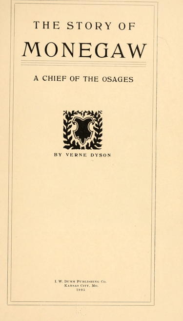 It is this incontrovertible fact which led Mr. Verne Dyson to weave into a fragmentary tale, some of the incidents in the stirring life of that great chief of chiefs, Monegaw, head of the tribe of the Osages.