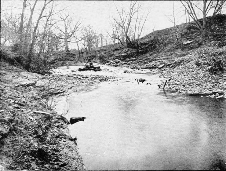 Early the next spring a large company of Spaniards, heavily armed, made the way through the wilderness to the head waters of the Osage River. In addition to arms and provisions, they carried tools with which to construct a keel boat from the native timber. It was their purpose to load the boat with a large quantity of the silver, float down the Osage to the Missouri River, thence to the Mississippi and on to the southern coast with their rich treasure.