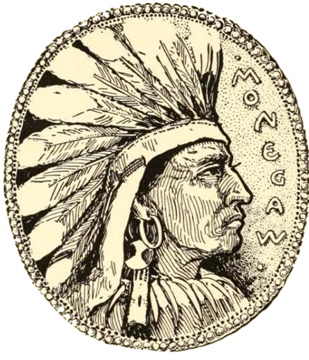 Monegaw first astonished his parents when he was less than two years of age. One day his mother was gathering sticks by the river and the boy, who had learned to walk only a few months previous, was following close behind. While she was reaching up to break a dead branch from a tree, she heard a splash in the river and looked back just in time to see the child disappear from view under the water. When Monegaw came to the surface he did not cry out or appear to be the least frightened, but began smimming rapidly toward the center of the river. Not being able to swim, the mother dropped her armful of sticks and, running to the village a hundred yards distant, gave the alarm to a laggard warrior who had remained, that afternoon, from the hunt. When the brave reached the river bank he beheld the tiny head above the water, far out from shore. He sprang in, swimming with utmost speed. It is said that the child actually reached the opposite shore before he was overtaken and, in crossing the river, had stemmed a current which was all but too much for his pursuer. It might be said that Monegaw's fame in the tribe dated from this singular occurrence.